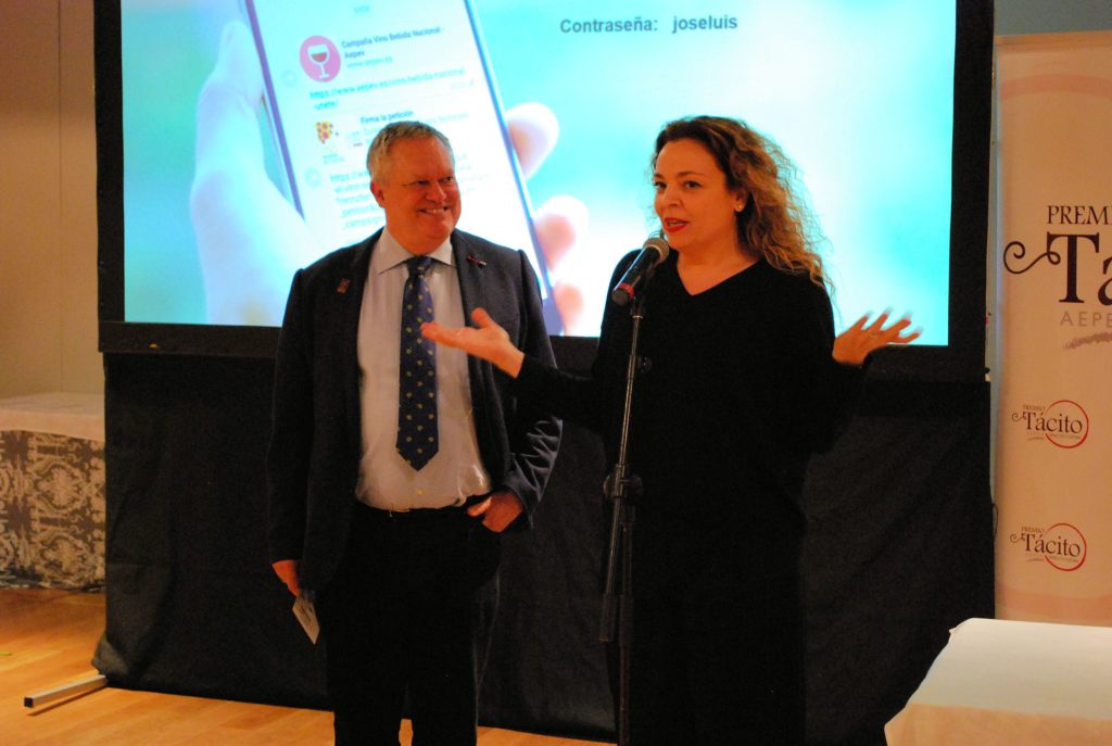Desde la Gerencia de AEPEV, se puso la relevancia en los Premios Tácito y se presentó la campaña de recogida de apoyos para que el VINO SEA DECLARADO BEBIDA NACIONAL DE ESPAÑA. Poniéndose en marcha en ese momento las adhesiones a través de Change.org y reuniendo en pocos minutos más de 100 firmas.