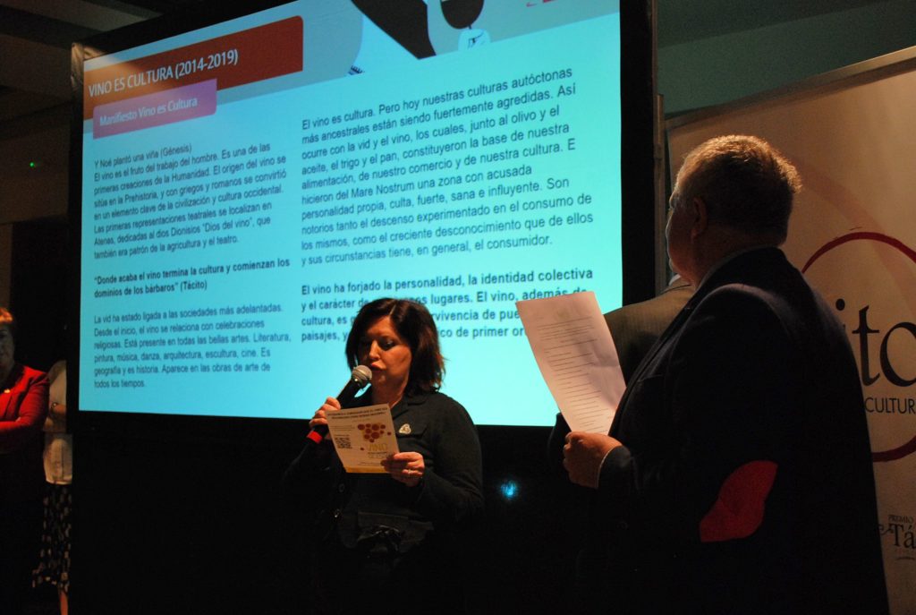 Durante el acto LA CULTURA del vino fue protagonista. La Presidenta de Honor Dª Mª Isabel Mijares recibió de manos de Enofusión, el premio a toda una vida dedicada a la difusión de la Cultura del Vino.