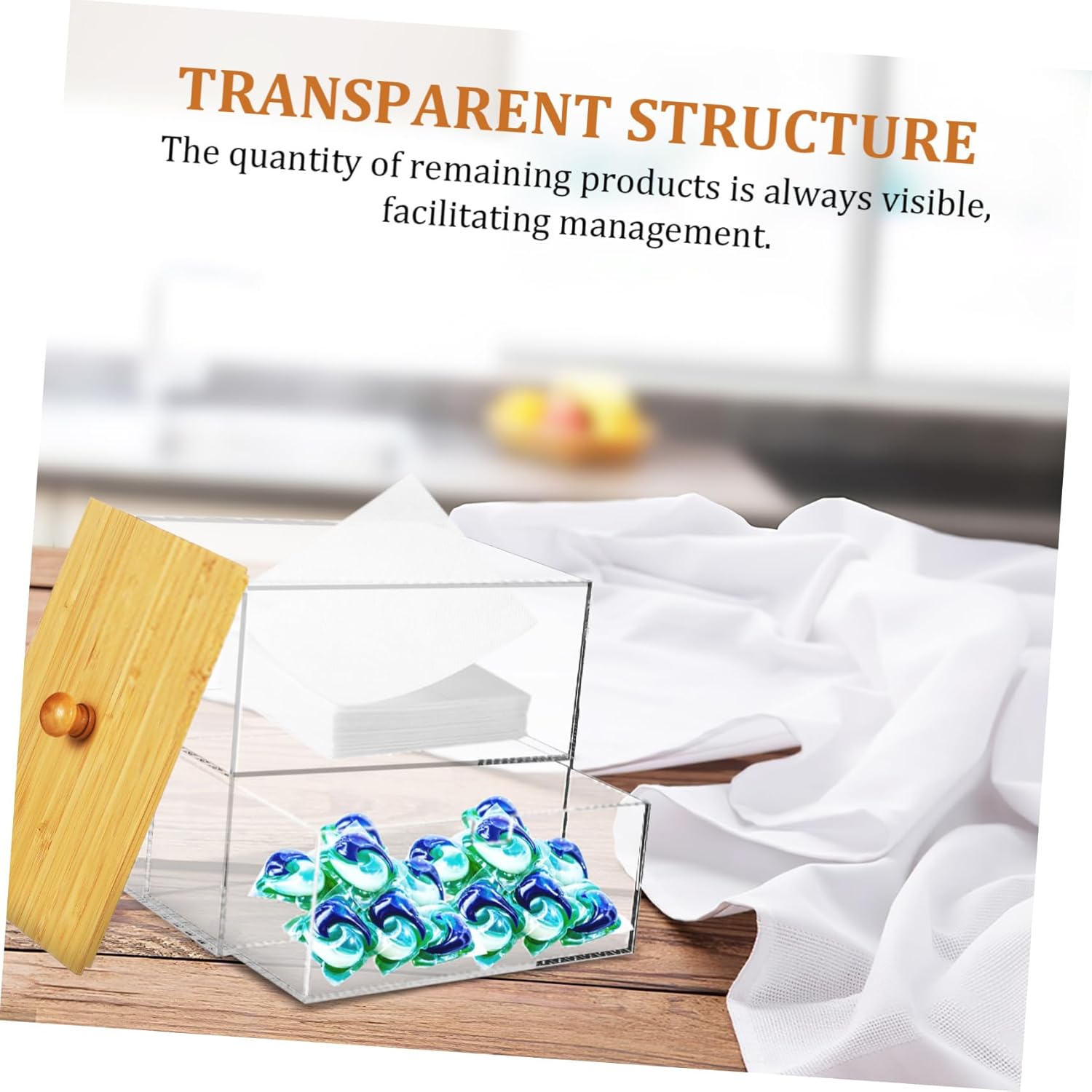 Package List 1 x storage box Characteristics -Compact and space-saving: Featuring a compact profile, container fits conveniently on laundry room shelves or counter tops laundry room organization container. -Enhances laundry efficiency: By keeping laundry stuff organized and visible, this laundry room organizer the laundry process and saves time laundry room organizers. -Size: 17.80X17.00X11.50cm/7.00X6.68X4.52in laundry organizer -Double layer organization: This laundry room storage box features two distinct sections for storing essentials separately, order and ease of use laundry beads container. -Transparency for visibility: The clear laundry holder allows you to see the contents clearly, can take at its resting amount laundry room organizer. -Convenient lid: The dryer sheet holder is equipped with a lid to protect contents, preserving product freshness while adding to its aesthetic. -Material:Acrylic, -Color:MultiGoods Descriptionlaundry beads container This thoughtfully designed box offers separate compartments for your laundry and dryer sheet, keeping them neatly separated and easily accessible.laundry room organizers The transparent box enables quick identification of contents, and you can it on time.laundry organizer This clear box is an ideal laundry accessory for the organized home