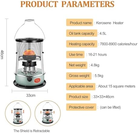 Introducing our versatile Kerosene Heater, designed for both indoor and outdoor use, making it an essential addition to your camping gear or home heating solutions. This portable paraffin heater is perfect for ice fishing, outdoor adventures, or simply keeping your home warm during chilly evenings. With a compact size of approximately 33 x 33 x 46 cm and a lightweight design of 4.8 kg, this heater is easy to transport, ensuring you can enjoy warmth wherever you go. The oil capacity of 4.5L allows for extended use, while the efficient heat output of 10,000 BTU/hr effectively warms an area of up to 20 square meters. You can expect low oil consumption of just 0.2 to 0.25 liters per hour, making it a cost-effective heating option. Our Kerosene Heater is equipped with features that enhance safety and convenience. It includes a liftable design for easy refueling and comes with essential accessories such as a storage bag, two stove wicks, an oil suction hose, a funnel, a switch, and protective gloves. Whether you are enjoying a weekend camping trip, hosting a gathering in your backyard, or need a reliable heat source for your home office, this windproof stove ensures you stay warm and comfortable. Its sturdy construction and thoughtful design provide peace of mind, allowing you to focus on what truly matters—creating memorable experiences with family and friends. Upgrade your heating solutions with our Kerosene Heater today and enjoy the perfect blend of functionality and portability for all your heating needs.