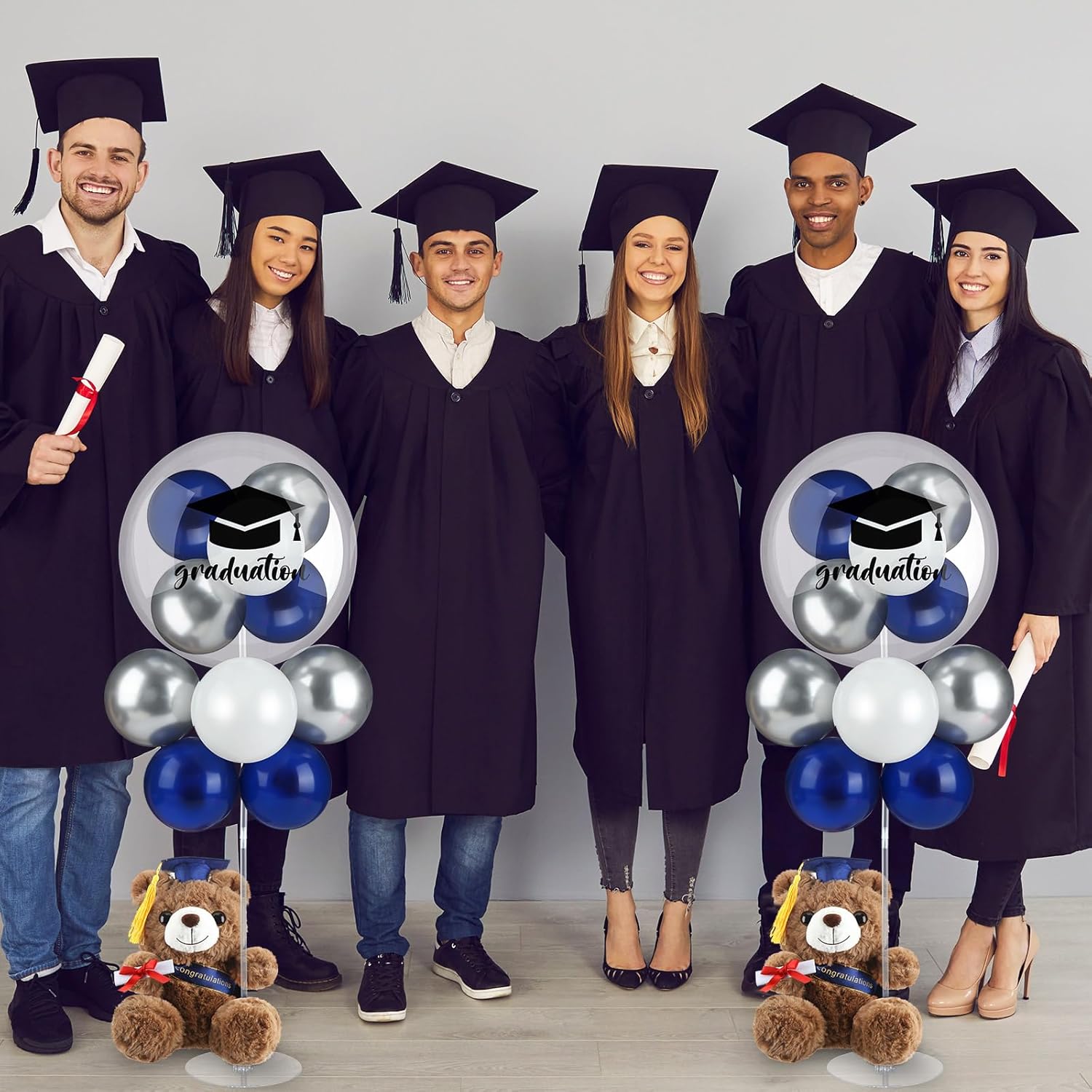Features: Nice graduation gift: In addition to decorative purposes, this graduation balloon desktop decoration is also a thoughtful gift for graduates, implying blessings and good luck, and becoming a precious commemoration of their graduation season. Graduation season party: The exquisite design of graduation balloons and bears will make your party atmosphere more lively, become the focus of friends' hot discussions, and easily enhance the celebration effect of graduation season. Specification: Material: latex and aluminum film Color: as shown as picture Size: as shown as picture The package includes: 6 x Graduation table centerpiece balloon set Note: Manual measurement, there may be slight errors in size. Due to different screen displays, there may be slight differences in color.