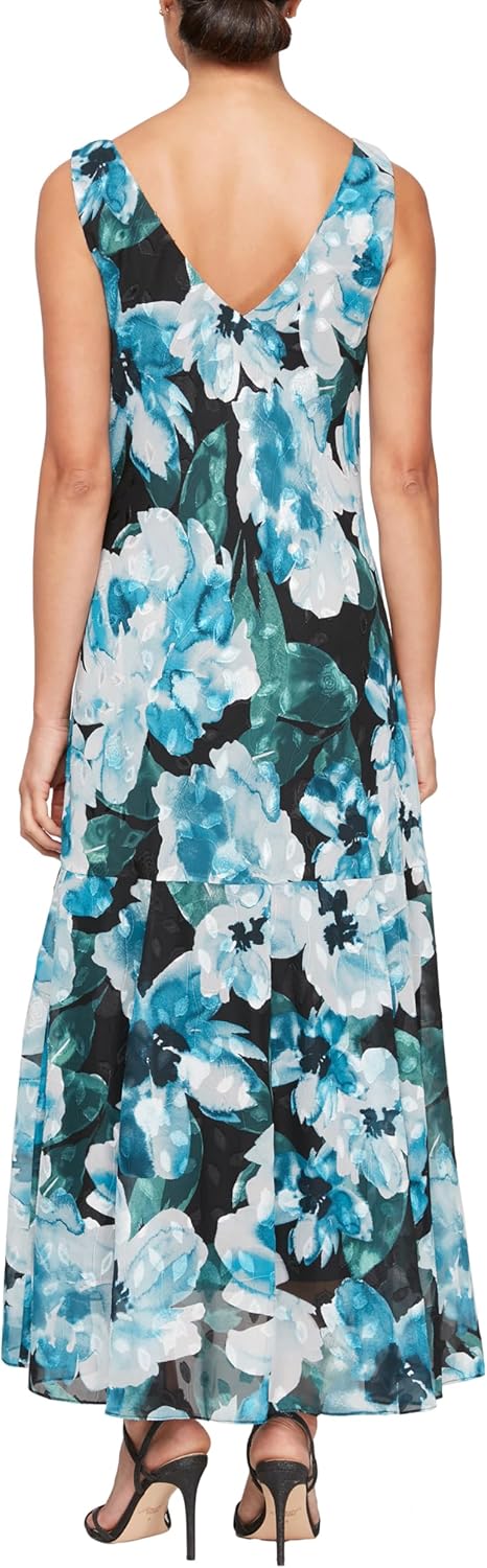 Elevate your special occasion wardrobe with the Alex Evenings Women's Elegant Sleeveless Printed Chiffon Dress. This stunning tea-length dress combines timeless grace with modern sophistication, featuring a beautifully draped cowl neckline that frames your décolletage with elegant flair. The all-over multicolor floral print dances across the premium chiffon fabric, creating a captivating visual effect perfect for spring and summer events. Thoughtfully designed with a figure-flattering A-line silhouette, the dress includes a coordinating shawl for versatile styling options and elegant coverage. The flowing skirt movement provides graceful motion while the center back zipper ensures a perfect fit. Crafted from soft, high-quality chiffon with a subtle sheen, this dress is fully lined for comfort and optimal drape. Perfect for mother of the bride, wedding guest attire, formal gatherings, or sophisticated summer soirées. The sleeveless design offers comfortable wear during warmer months while maintaining a refined appearance. Available in a range of sizes, this Alex Evenings dress embodies the perfect blend of comfort, style, and occasion-worthy elegance.