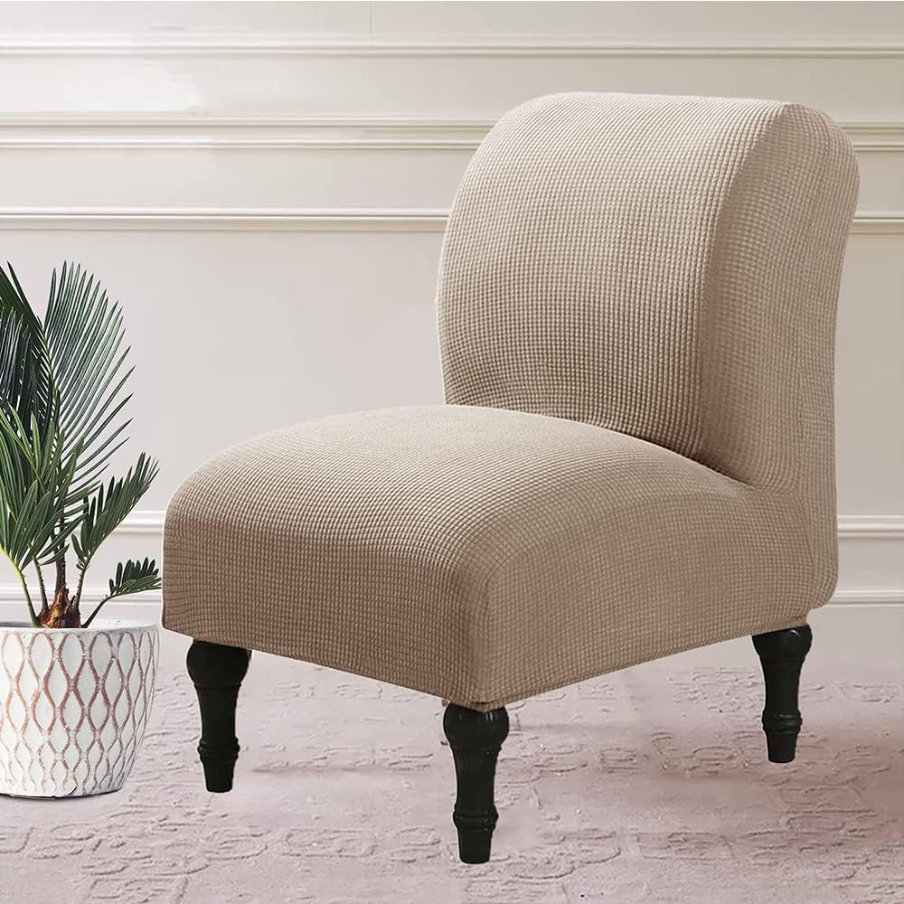 Armless chair slipcover protect your accent slipper chair from food and drink spills, pet hair and messy with our armless chair cover that easy to install and take off,armless chair covers a great partner for household life. Features: - This innovated furniture is constructed with 1 Piece (body and seat covers both together) to provide effortless installment. - Super thick, soft, smooth, anti-wrinkle, no fading, durable as well as highly stretch fabric. - Freshen up your chairs, keep them clean and protect your furniture from dust, spills, stains, wear, fading and tear etc. - Cover stains and imperfections from everyday living. Save you money by extending the life of your chair, protect or update your accent chairs appear brand new. Package Includes: - 1/2 x Armless Accent Chair Cover Please Attention: - Due to different light and screen, the color of the item may be slightly different from the image. - Due to manual measurement, please leave a distance of 1-3 cm. Please understand us, thank you very much.