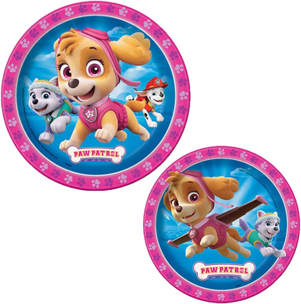 Join Skye, Everest and all your favorite Paw Patrol characters in throwing an amazing themed Birthday Party! We've created this deluxe Girls Paw Birthday Party Supplies Pack For 16 Guests with everything your party will need to be a hit! We've included; 16 - 9in Round Plates, 16 - 7in Dessert Plates, 16 - Luncheon Napkins, 16 - 9oz Paper Cups, 1 - 54in x 96in Plastic Table cover, 1 - Plastic Favor Cup, 6 - Balloons, 1 - Pink Garland. Plus an EXCLUSIVE “It’s a PAWsome Day!” 2.5” Pin which can be used as an activity prize or gifted to a special guest or the host themselves!