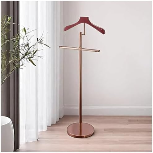 Introducing our elegant valet suit rack, designed to elevate your organization game while adding a touch of sophistication to any space. This compact yet spacious valet stand ensures your professional attire and casual outfits are neatly arranged, free from wrinkles and unwanted creases. Perfect for those who value both style and functionality, it transforms your daily routine into a seamless experience. Crafted with a blend of metal and wood, this freestanding clothing valet boasts a modern aesthetic that complements any decor. The innovative design includes a wooden contour hanger at the top, ideal for coats, suits, jackets, and shirts. A sturdy metal trouser bar allows you to hang pants effortlessly, while two metal tie bars keep your ties and belts neatly organized. This valet stand is not just a practical storage solution; it makes a thoughtful gift for anyone who appreciates a blend of luxury and organization in their daily life. Its minimal footprint fits perfectly in closets or bedrooms, making it an essential addition to your home. **Product Specifications:** - **Name:** Men's Valet Stand - **Installation Type:** Standing - **Special Features:** Portable, Storage, Space Saver - **Style:** Modern - **Frame Material:** Metal, Wood - **Recommended Uses:** Coats, Hats, Shoes, Ties, Belts Transform your space with our valet rack and enjoy an organized, stylish environment every day.