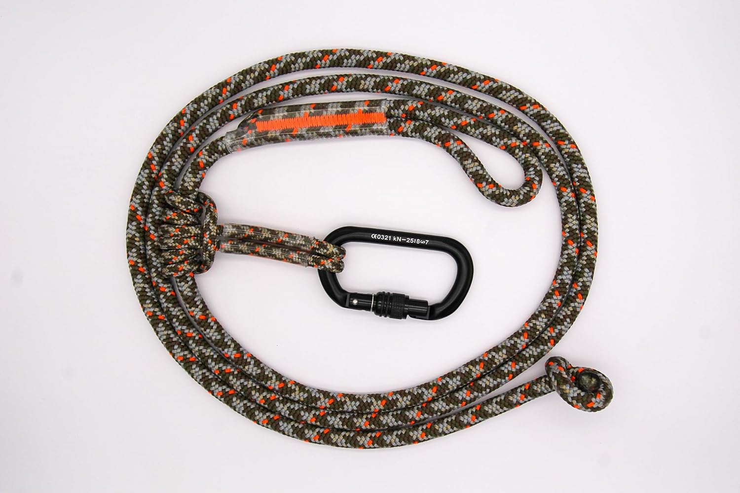 ZOOK Outdoors’ premium, second generation tree tether makes hunting from your tree stand much safer by protecting you from an accidental fall. The ZOOK Tether 2.0 is made in the USA (with domestic and some internationally sourced materials). Our rope is made with the highest strength, braided nylon core and then covered with abrasion resistant, braided polyester. This makes the toughest rope that will stand up to the elements and resist wear..4 inch min eye. Now features an aluminum oval carabiner compatible with Kong Duck ascenders.