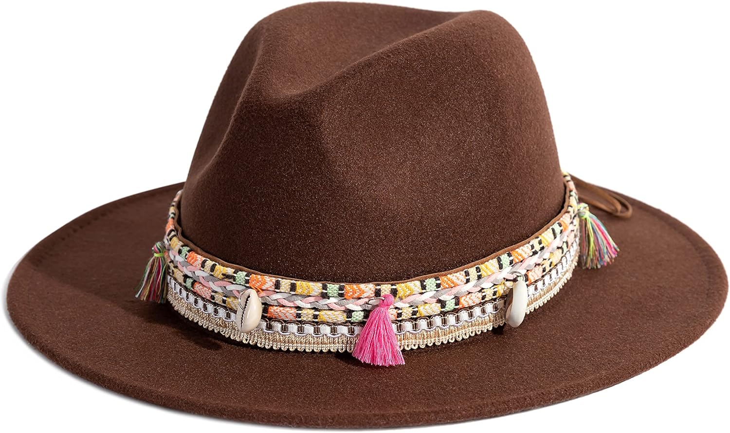 Gossifan Women's Felt Fedora Hat Wide Brim Panama Hats with Tassel