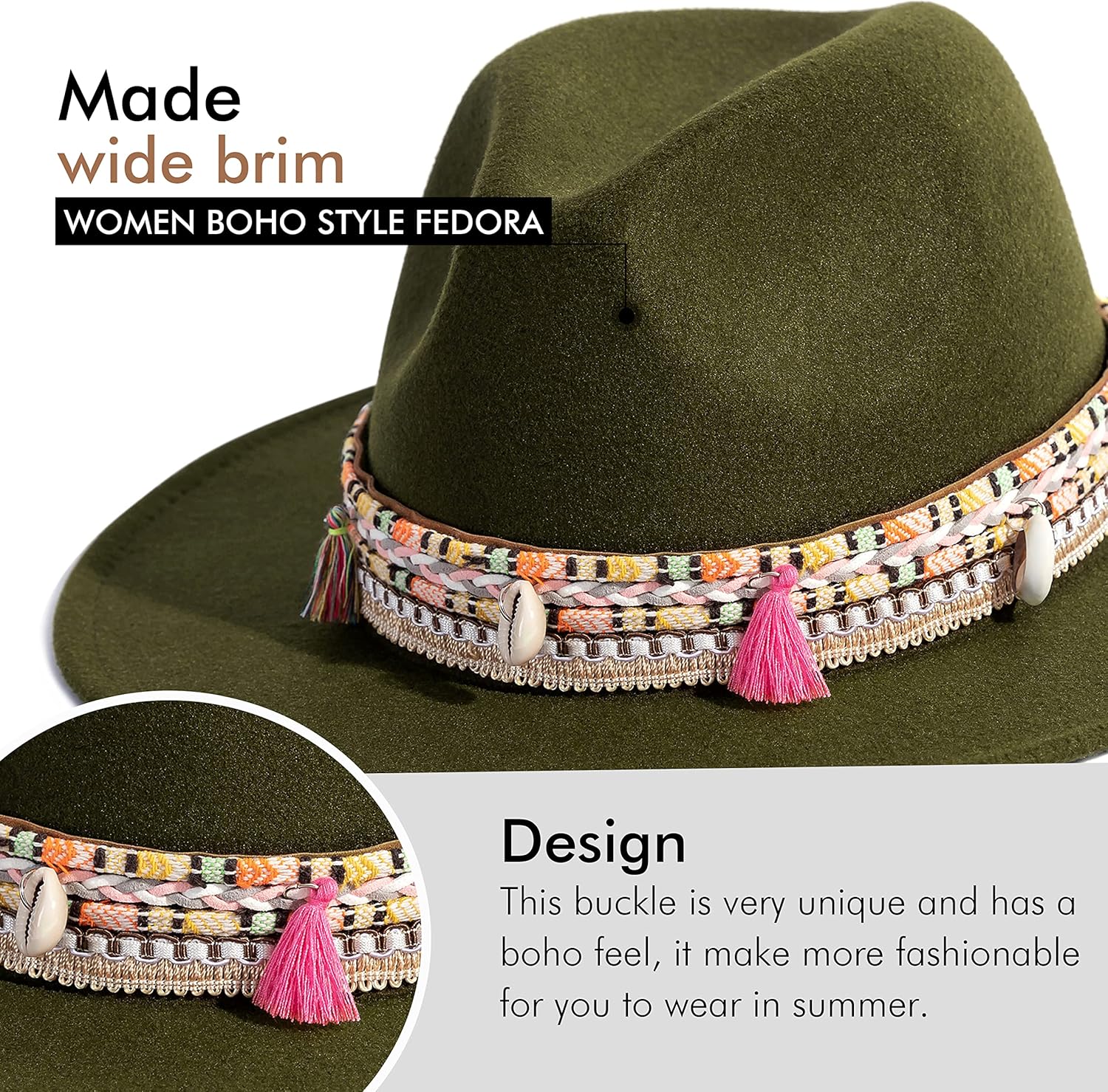 • MATERIAL: 65% cotton, 35% polyester, soft and comfortable to wear, this fedora hat with a chic boho belt buckle.
