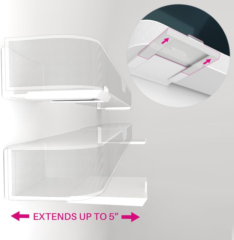 | Whats in the box | (1) soundbar color guide, (2) aluminum adjustable soundbar shelves, (2) easy-slide brackets w/ level, Installation Guide, Required Hardware |