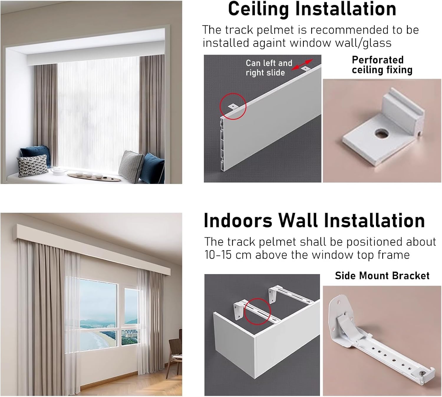 Transform your living space with our premium curtain rail box, designed to enhance both functionality and aesthetics. This innovative product effectively blocks light, creating a serene and cozy atmosphere in your home. Perfect for bedrooms, media rooms, or any space where you desire a touch of elegance and privacy.Package Includes:- 1 x Curtain Box without Track- All Mounting AccessoriesSpecifications: - Material: Durable aluminum alloy metal- Length: Adjustable from 1 to 3 meters (39.4 to 118.1 inches)- Height: 14 cm (5.5 inches)- Installation Style: Ceiling or indoor wall mounting- Customizable: Yes, to fit your unique space- Cuttable: Easily cut to your desired length with a hacksawFeatures:- Lightweight yet sturdy design for easy installation- Resistant to color fading and deformation, ensuring long-lasting beauty- Strong light-blocking capability, adding both elegance and privacy to your home- Versatile enough to suit various curtain styles and home decorsUsage Tips:- For lengths of 150 cm or longer, we will ship the product in parts for your convenience, including a connector for easy assembly.- Please be aware that manual measurements may vary slightly; a few centimeters difference is possible.- Actual product colors may differ due to display settings and lighting conditions; always refer to the product itself for accuracy.Elevate your home’s ambiance while enjoying the practical benefits of our curtain rail box. It’s the perfect addition for anyone looking to combine style and functionality in their living environment.