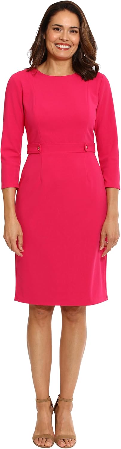 London Times Women's Dresses Work Office Business Sheath Dress with Button Waist Detail
