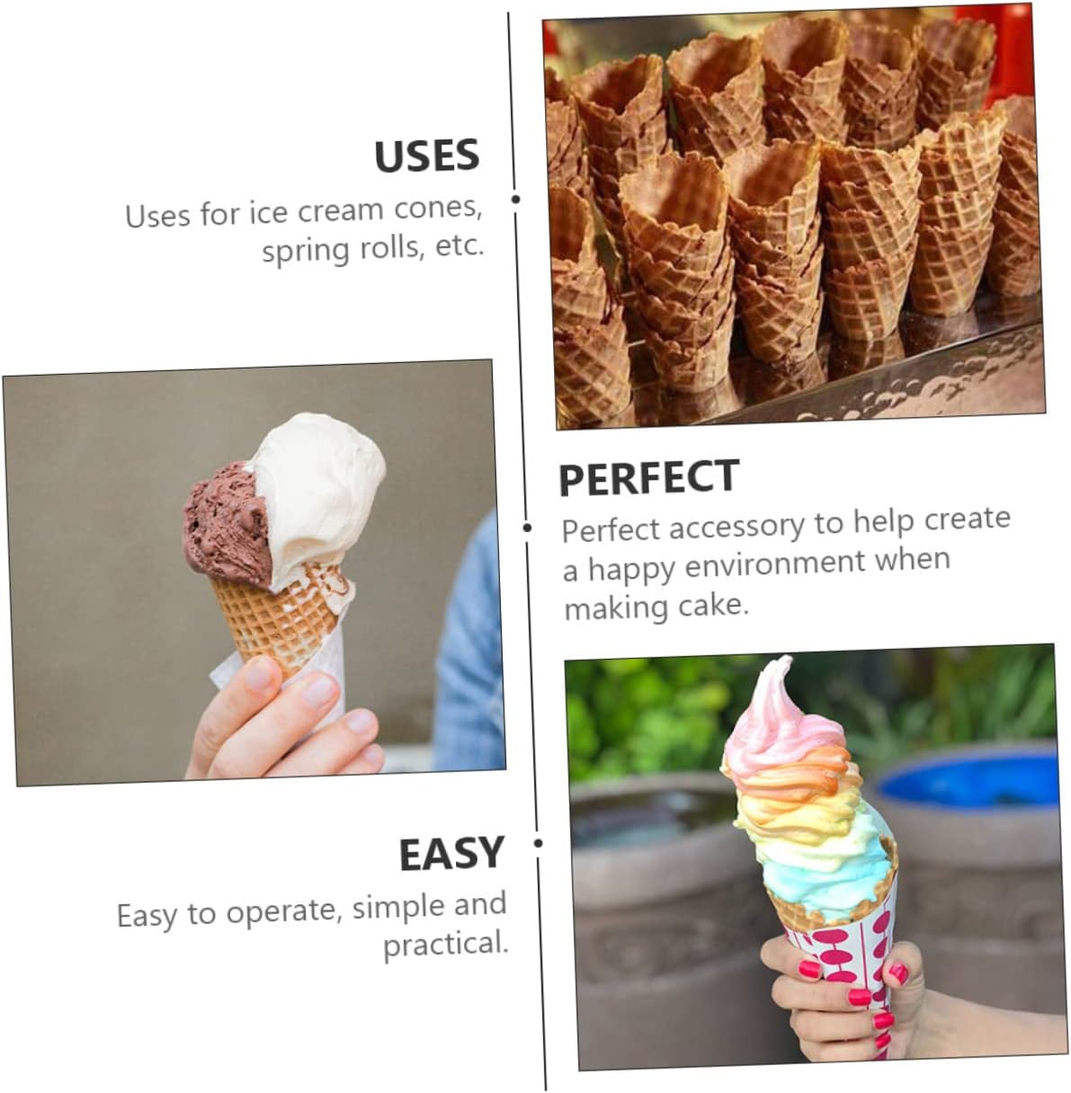 Package List 9 x Ice Cream Cone Mold Characteristics -Material:ABS cone roller -Size:23.50X5.00X5.00cm/9.24X1.97X1.97in ice cream cone shaper -Color:As Shown DIY egg cone maker -Manufactured with , and , it ice cream cone maker. -A Ice Cream Cone Maker Tool that brings many conveniences to your DIY experience waffle cone maker for home. -Excellent workmanship and fine details its popularity and durability The mold can bring you good usage experience dessert holder. -You can use this Ice Cream Cone Mold to make delicious ice cream for your family ice cream cones mold. -Reliable details, no peculiar smell, not easy to deform and break, and widely used egg cone mold.Goods Informationdessert holder Are you looking for a and Ice Cream Cone Mold? Then you must not miss our products, workmanship and good details.dessert making mold Is .waffle cone maker for home Smooth surface, .ice cream accessories Specially used for making and shaping ice cream , simple operation and convenient use.waffle cone Simple exterior design
