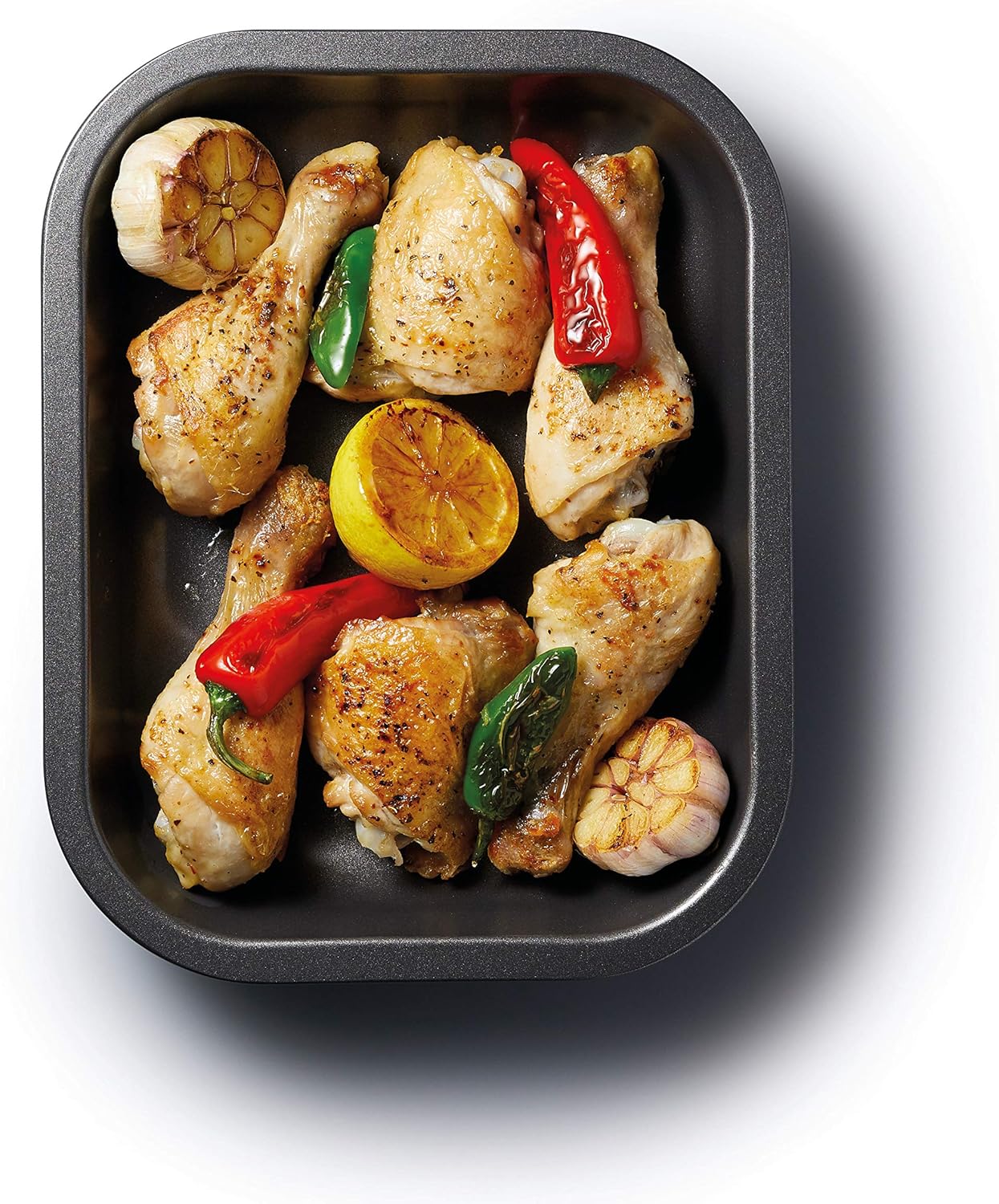 Sirloin of beef, pork belly joint or a small whole chicken - with the Master Class Non-Stick Roasting Tin you can enjoy perfectly succulent roasts without the hassle. With its robust steel design and clever non-stick coating, it's designed to provide years of enjoyable, fuss-free roasting. The roaster measures 27 x 21 cm (10½” x 8½”), with a depth of 4 cm (1½”). This size makes it a great all-rounder – expect great performance, whether you’re roasting a small joint of beef for Sunday lunch, or gorgeous roast potatoes. Exceptional Roasting Results, Every Day This roasting pan is manufactured from 1 mm-thick commercial grade carbon steel for maximum strength and durability. This heavyweight construction stops it from warping or buckling in the oven or under the grill. It's surface has also been electroplated and its edges rolled, to prevent corrosion. And last but not least, it’s been through a special sandblasting process, to help secure its Quantum II non-stick finish. Every aspect of its manufacturing process is focussed on creating a pan that lasts and lasts. That’s why it’s covered by Master Class’s 20 year guarantee. Quantum II Silicone Non-Stick The roaster is coated with a double layer of the Quantum II coating, which uses a robust mixture of silicone and ceramics to release food quickly and easily. Quantum II is designed to outperform all conventional non-sticks, and is 100% PFOA, BPA and PTFE-free. More Features – Fridge, freezer and dishwasher safe – Really easy to clean – Heat safe up to 220 degrees Celsius (428 degrees Fahrenheit) – Includes Master Class's 20 year guarantee , as well as a 5 year non-stick guarantee More from the Master Class Bakeware Collection For the perfect roast, explore the full award-winning* range of bakeware products from Master Class. Why not try using your 27 cm tin to roast crisp, golden potatoes, and the larger non-stick 36 cm roasting tin (KCMCHROAST36) to roast succulent pork belly with apples? *Winner of Housewares Magazine’s Bakeware Best of Best Sellers 2014 and 2013