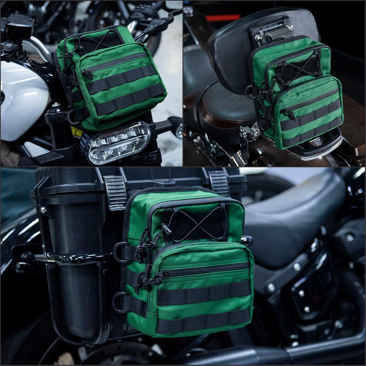 Motorcycle Universal Club Style Utility Molle Traveller Bar Handlebar T-Bar Bag Handle Bags, Fit For Harley Dyna Street Bob Softail Sportster, Tool Pouch Trunk Storage Bag, Snake Venom Green