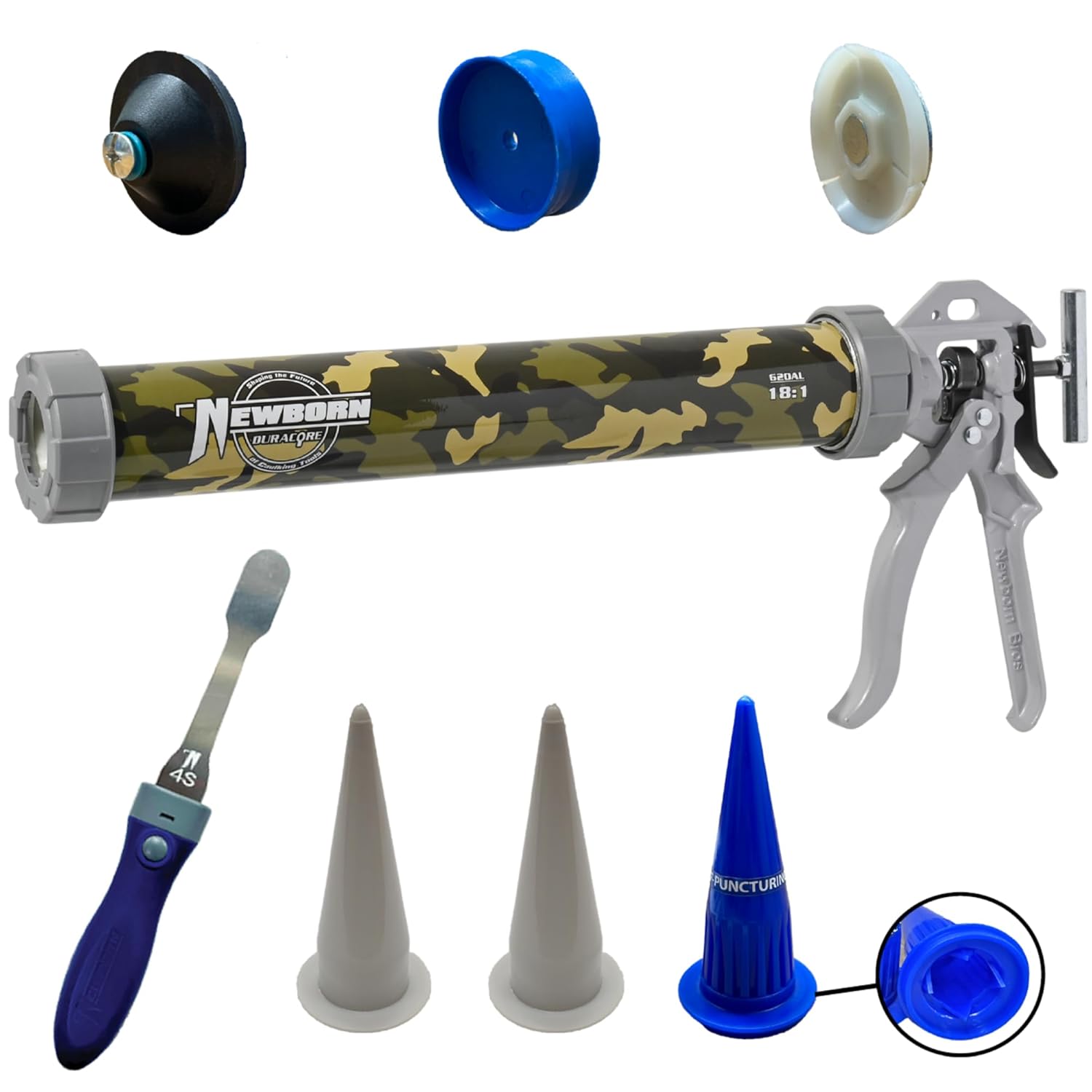 Newborn's Green Barreled, 20 oz. Sausage (also 20 oz. Bulk) Round Rod Gun w/Aluminum Barrel and 18:1 Thrust Ratio. Tired of the standard silver/gray barrel sausage guns? Grab one with a different color barrel. Great when using multiple types of materials on a job so you don't get mixed up. Great to personalize in any way by adding your own stickers and labels.