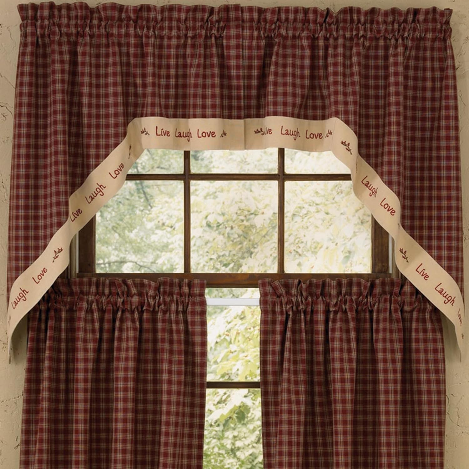 Complete the look of any room with our charming country swag curtain. The rustic hues will add the perfect pop of wine red color to your existing primitive decor, making it a great addition to your space. Whether you hang it in the kitchen, bathroom or use it to dress up the curtain panels in your living room, you'll love the transitional style it adds to your home. It can be used as a standalone accent or paired with the coordinating tier pairs for a timeless farmhouse look!