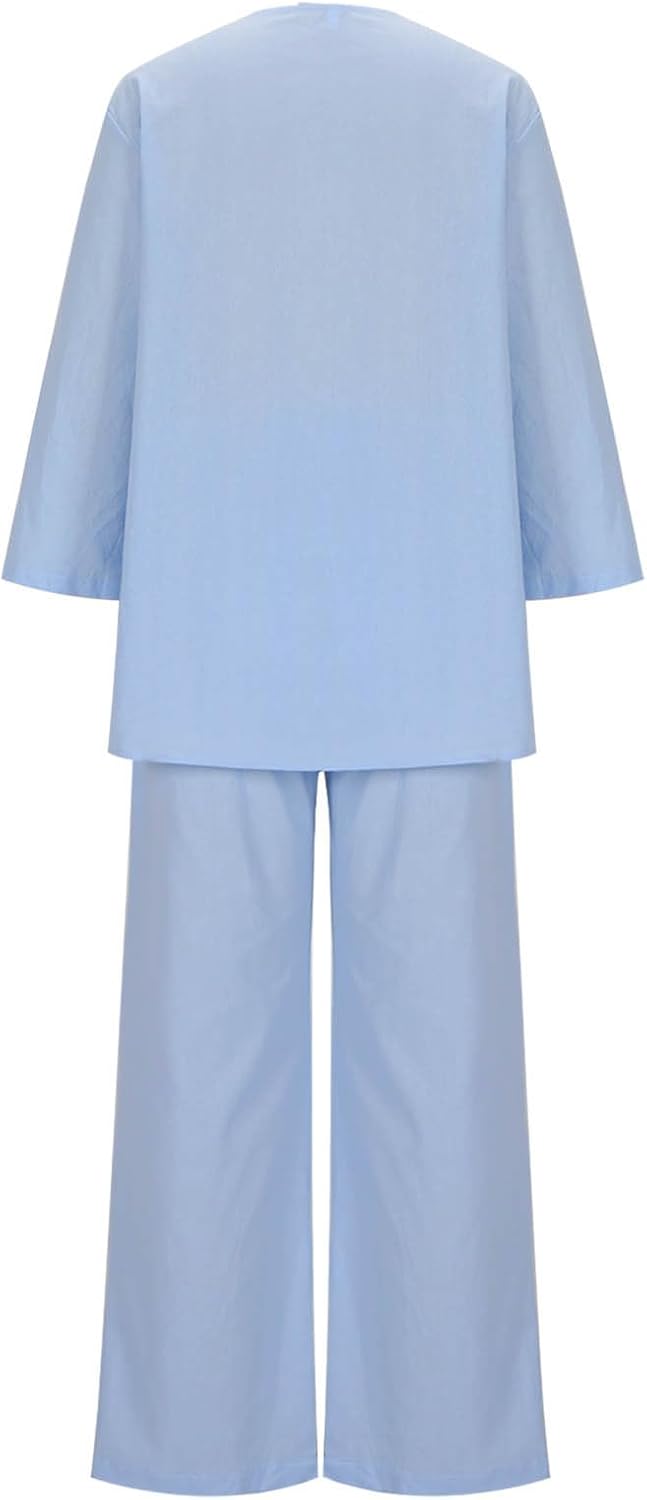 Women's Summer Two Piece Wide Leg Pants Set Dressy CasualLoose Fitting Summer Tops and High Waisted Palazzo Pants SetWomens Comfy Loungewear Sleeveless Tank Top and Pants SetWomens Trendy Two Piece Set Matching Tracksuit SweatsuitSize Notice: Size Runs Small, we recommend ordering one or two sizes larger !!EYE-CATCHING DESIGNSHigh Waisted Wide Leg Pants for Women/ Elastic Waist Sweatpants/ Women Sweatpants with Pockets/ 2 Piece Palazzo Pants Set/ Sleeveless Tank Tops/ V Neck Loose Fitting Tops for Women/ Kitted Two Piece Outfit/ Flowy Pants/ Summer Clothes.MATCHING STYLEWith its Neutral Colors and Timeless Design, this Active Set is Easy to Match with other Items in your Wardrobe. Pair it with your Favorite Sneakers or Accessories, and Create Countless Fashionable Outfits without any Effort.COMFY LOOSE TWO PIECE SETThe Top Features a Flattering O/V-Neckline that Adds a touch of Femininity, while the Wide Leg Pants Provide a Relaxed Fit that Allows for Unrestricted Movement. From summer parties to leisure time, this trendy two-piece outfit is perfect for every occasion. Such as home, daily, holiday, going out, outdoors, shopping, travel, work and school. It's a must-have for daily wear and vacations!This two-piece set can be worn together or separately for a variety of occasions. It can be perfectly paired with sneakers or sandals for a cute and stylish look, it's the choice for summer outfits.