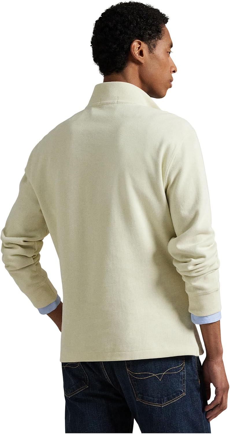 Our Estate-rib fabric gives this Polo Ralph Lauren Estate- Rib Quarter Zip Pullover a super-soft hand, thanks to lightweight cotton that's both peached and brushed. It features a mock neckline with a quarter-zip placket, long sleeves with banded cuffs, and even vented hem. Regular fit and pullover style. Zipper pull custom-developed with a "Polo" logo. Multicolored signature embroidered Pony on the left chest. 100% cotton. Machine washable.