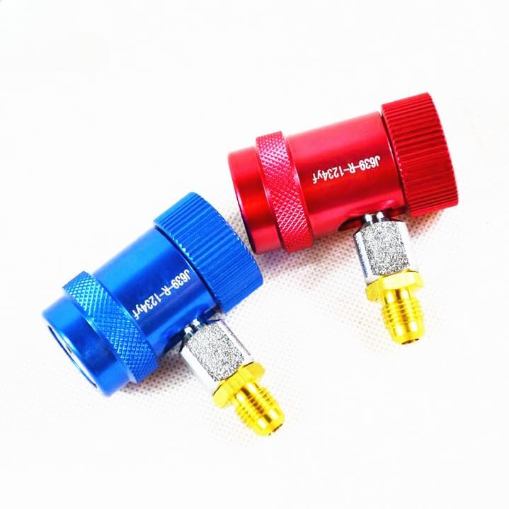 Condition: NewModel: R1234yf (ONLY fit for this model)Material: Brass & metalColor: Red,blueSize: Height 68mm, Diameter 30mmPurpose: air conditioning and refrigeration systems and fluorideFeatures:R1234yf Quick connect refrigerant air conditioning Adapter.Red for high pressure.Blue for low pressure.The quick connect design has an integral safety.Sleeve which protects against injury and refrigerant lossif the coupler is disconnected under pressure.Item specifics:Special features: noMaterial type: metalItem weight: 0.06kgItem size: inchModel name: AZ-D02Out power: WOrigin: Mainland ChinaCar: For Land Rover, For Jaguar, bentley..etcSize: Size: Height 68mm, Diameter 30mm