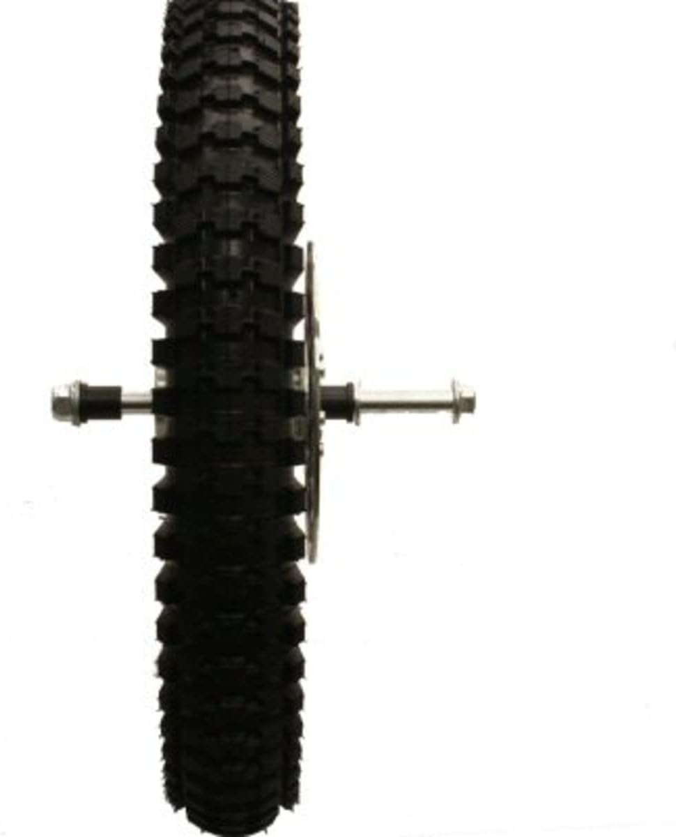 Authentic OEM Razor Front Wheel Assembly for the Razor MX500 and MX650 Dirt Rocket. Includes 16"x2.4" knobby tire, inner tube, wire spoke wheel, disc brake rotor, and axle.