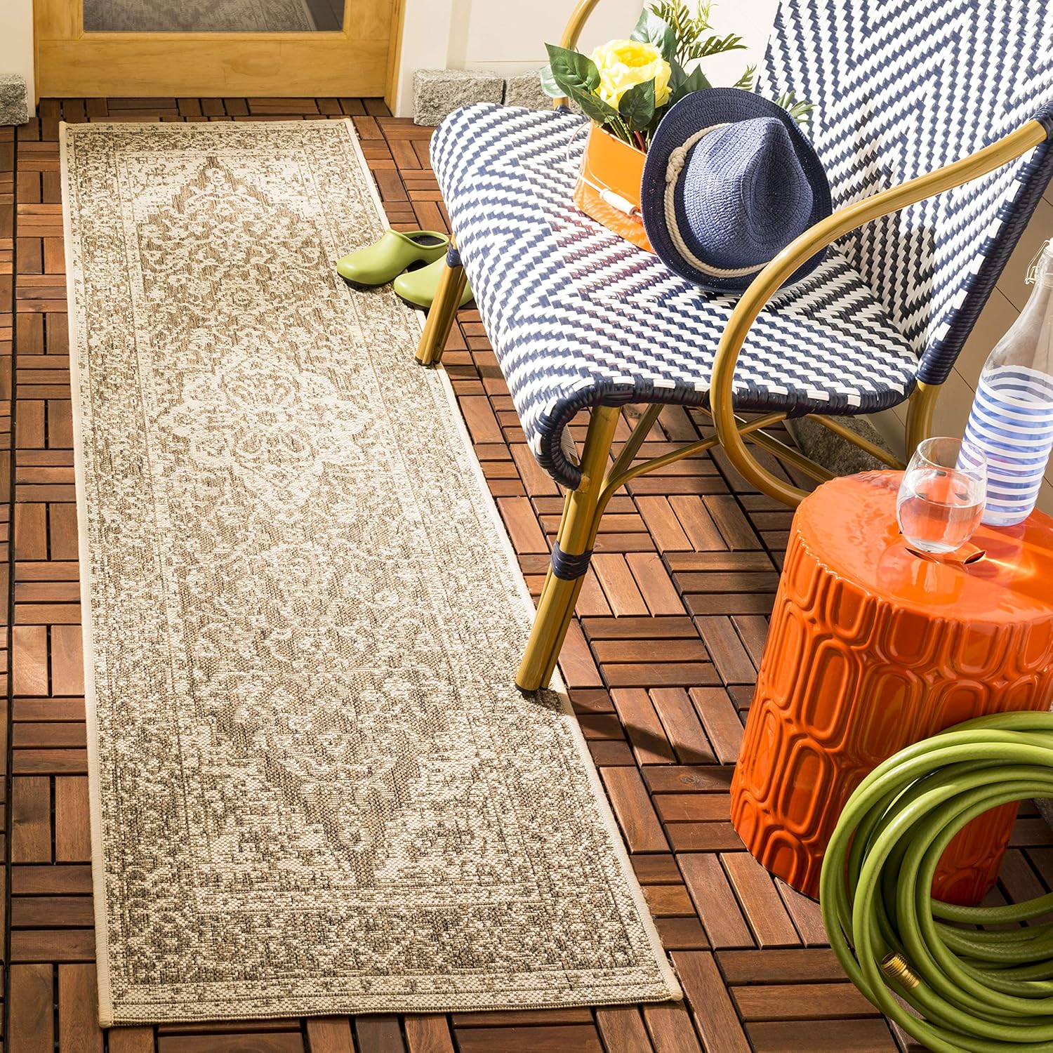 Treat yourself to the easy-care and versatile indoor/ outdoor rugs in Safavieh beach house Collection. Geometric patterns and medallions create a fun contemporary feel Whether on the patio or in the living room. Constructed with enhanced polypropylene fibers, these rugs are non-shedding and all-weather to make cleaning and general upkeep A breeze.