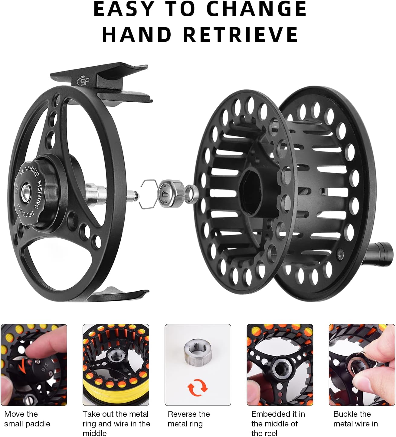 | Included Components | SF fly fishing reel combo pre-loaded with WF5F-90FT fly line in fluorescent yellow, 20LB-50M backing in orange, and 9FT-4X tapered leader in clear |