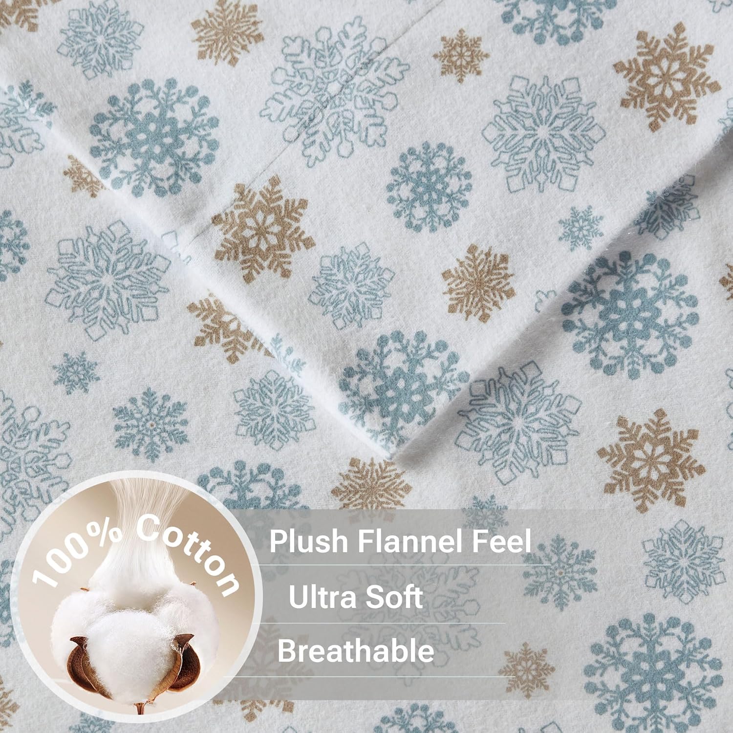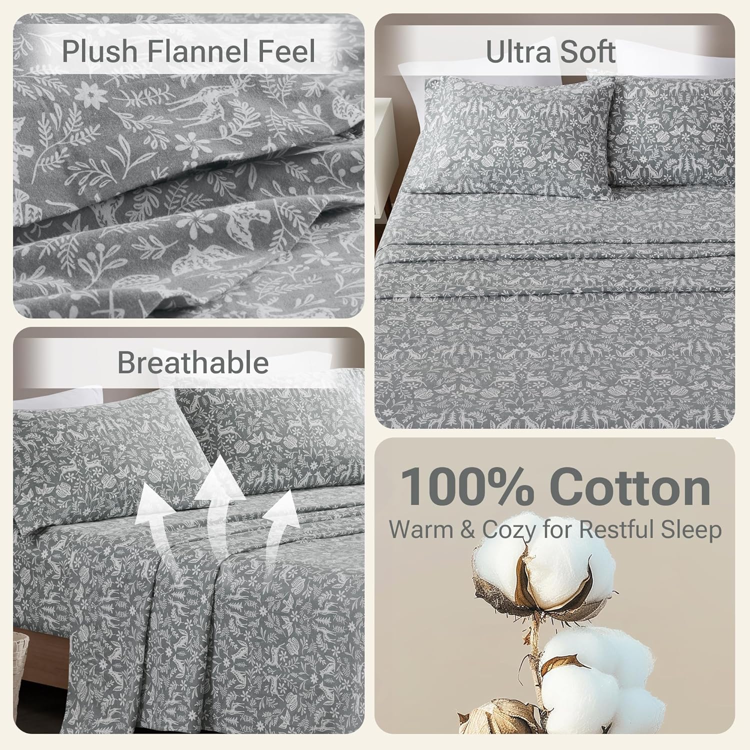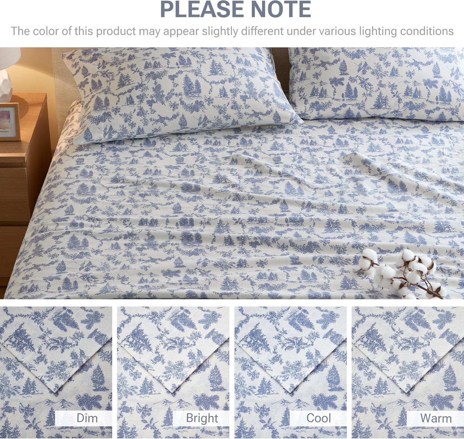 Keep warm and cozy with this ultra-soft cotton flannel sheet set, perfect for cold winter nights! Featuring a variety of prints these cotton flannel sheets provide a soft and inviting look. Machine washable for easy care. These cotton flannel sheets are also OEKO-TEX certified, meaning they do not contain any harmful substances or chemicals, ensuring quality comfort and wellness. Set includes: 1 Flat Sheet, 1 Fitted Sheet, 2 Pillowcases (1 in Twin/TwinXL sizes).