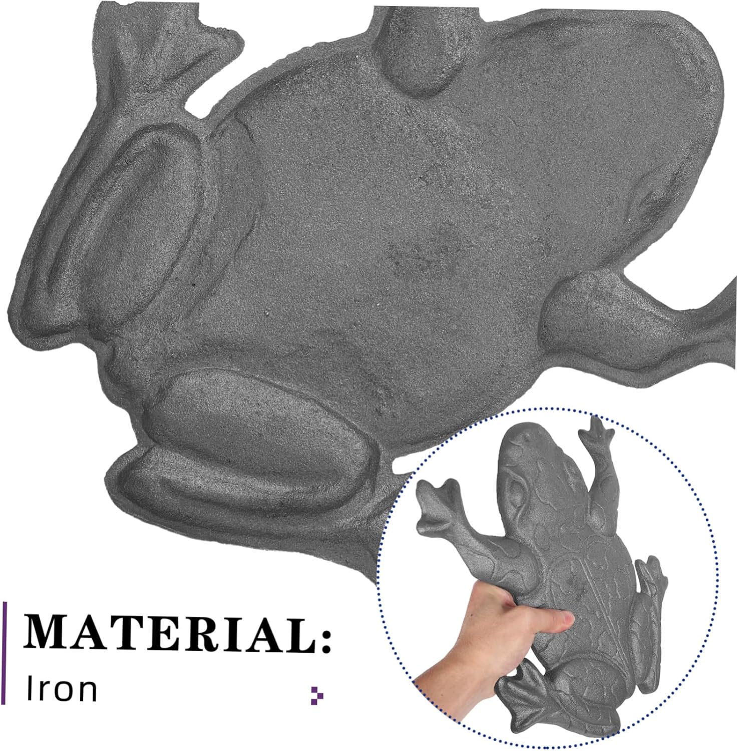 Package Include 1 x cast iron frog stepping stone Features -Frog themed elegance: the unique brings a touch of nature to your garden, creating a delightful focal point patio stepping stones -Heavy duty material: constructed from cast iron, this stepping stone offers exceptional durability and strength, for outdoor use garden frog sculpture -Design: the textured surface ensures secure footing, providing peace of mind during wet or slippery conditions paving stones for garden -Landscape enhancement: ideal for garden paths, patio areas, or pond surroundings, this stepping stone contributes to a harmonious outdoor environment cement stepping stone -Color:Silver metal frog statue -Size:31.00X27.50X2.00cm/12.18X10.81X0.79in metal frog garden decor -Versatile style: its vintage inspired look complements a wide range of garden decor, from traditional to contemporary settings stepping stones walkway -Material:Iron cast iron outdoor animal decorGoods Informationcement stepping stone Whether used to create a stepping path or as a standalone ornament, it enhances the visual appeal of your garden while providing a functional stepping surface.outdoor stepping stones for garden Add a touch of charm to your yard with this cast iron frog stepping stone.garden stepping stone Its detailed design and robust construction make it a choice for outdoor decoration
