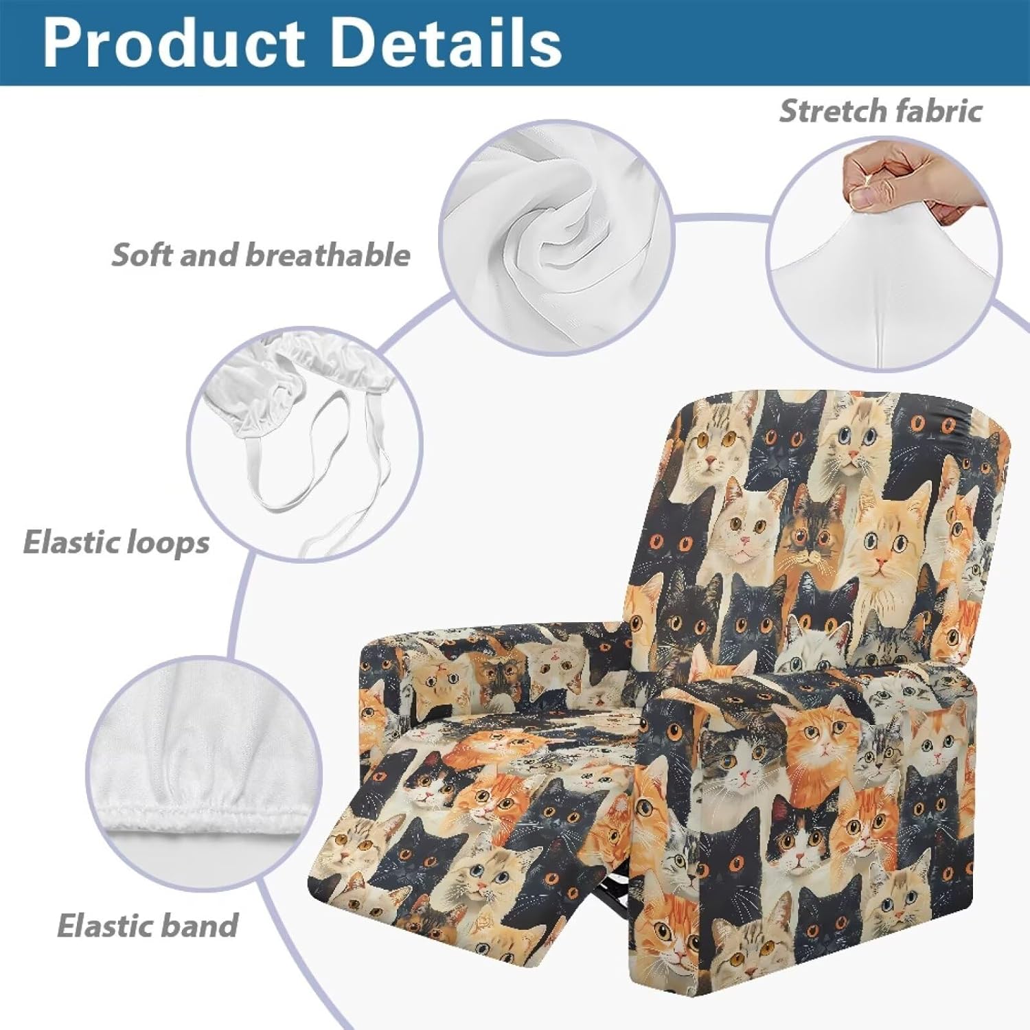 Transform and protect your recliner with our Premium Recliner Chair Cover, designed for comfort, style, and practicality. Made from a soft polyester and spandex blend, this highly elastic fabric ensures a snug fit while being wrinkle-resistant for long-term durability. Our covers are designed to fit most recliners, accommodating rest area widths of 23-35", backrests 27-37" wide and 17-22" high, and armrests 26-35" long and 20-29" high. Be sure to measure your recliner for a perfect fit. Not only do these covers provide complete protection from stains, pet scratches, and accidental spills, but they also revitalize old recliners and safeguard new ones. The elastic straps and reinforced bottom keep the cover securely in place, even with daily use. Plus, the large side pockets are perfect for storing remotes, glasses, books, and more to keep your space tidy. This 4-piece set includes a backrest cover, seat cover, and two armrest covers. Available in a variety of stylish prints, our reclining covers add a pop of color and elegance to any living room. Upgrade your recliner today with our functional and fashionable covers!