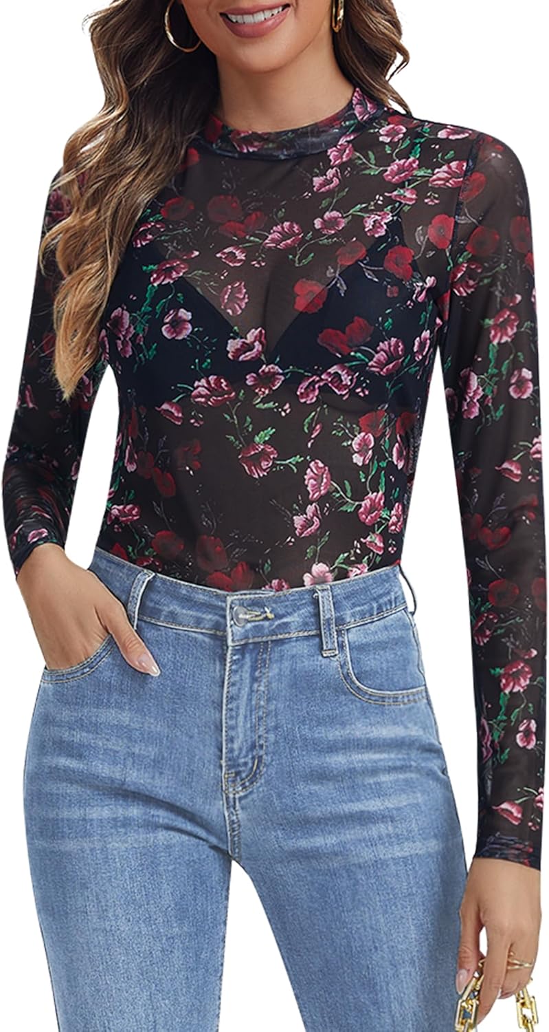 • Features: This trendy sexy see through tops for women is featured in a lace sheer design with floral embroidery, long sleeve, mock neck and ruffle hem. The high-neckline is comfortable and not too tight without feeling restrictive around the neck