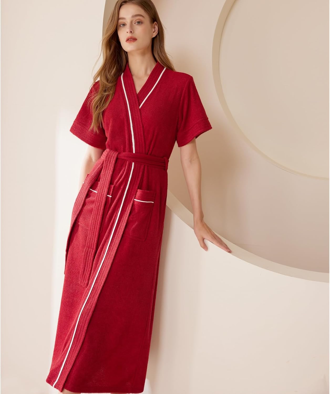 Homgro Women's Short Sleeve Bathrobe Billowy Bathrobes Belt Loops Calf Length Fall Chic Home Long All Seasons Bath RobeSize GuideTag size M = US size Small,Tag size XL = US size Medium-Large,Tag size 3XL = US size X-Large-XX-Large