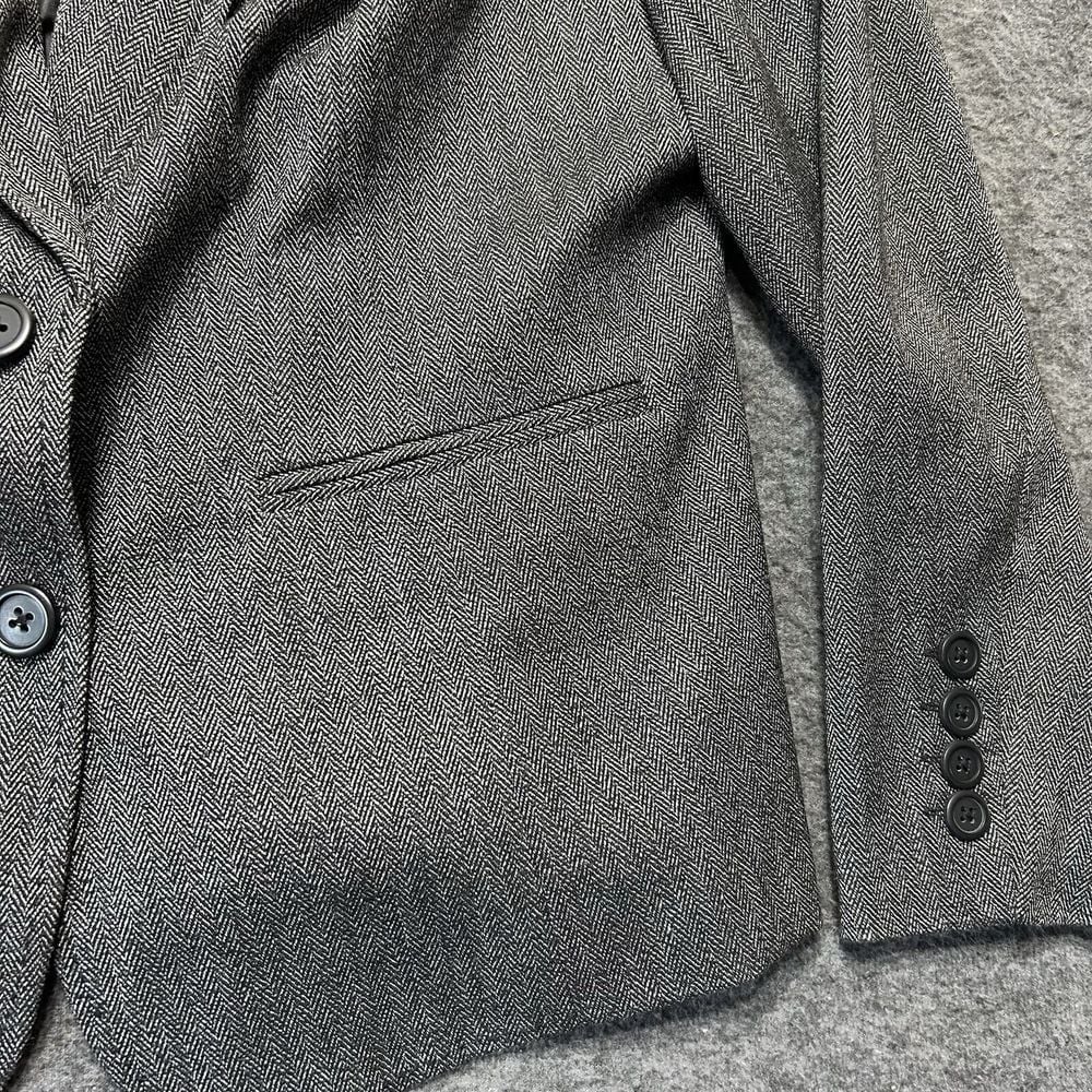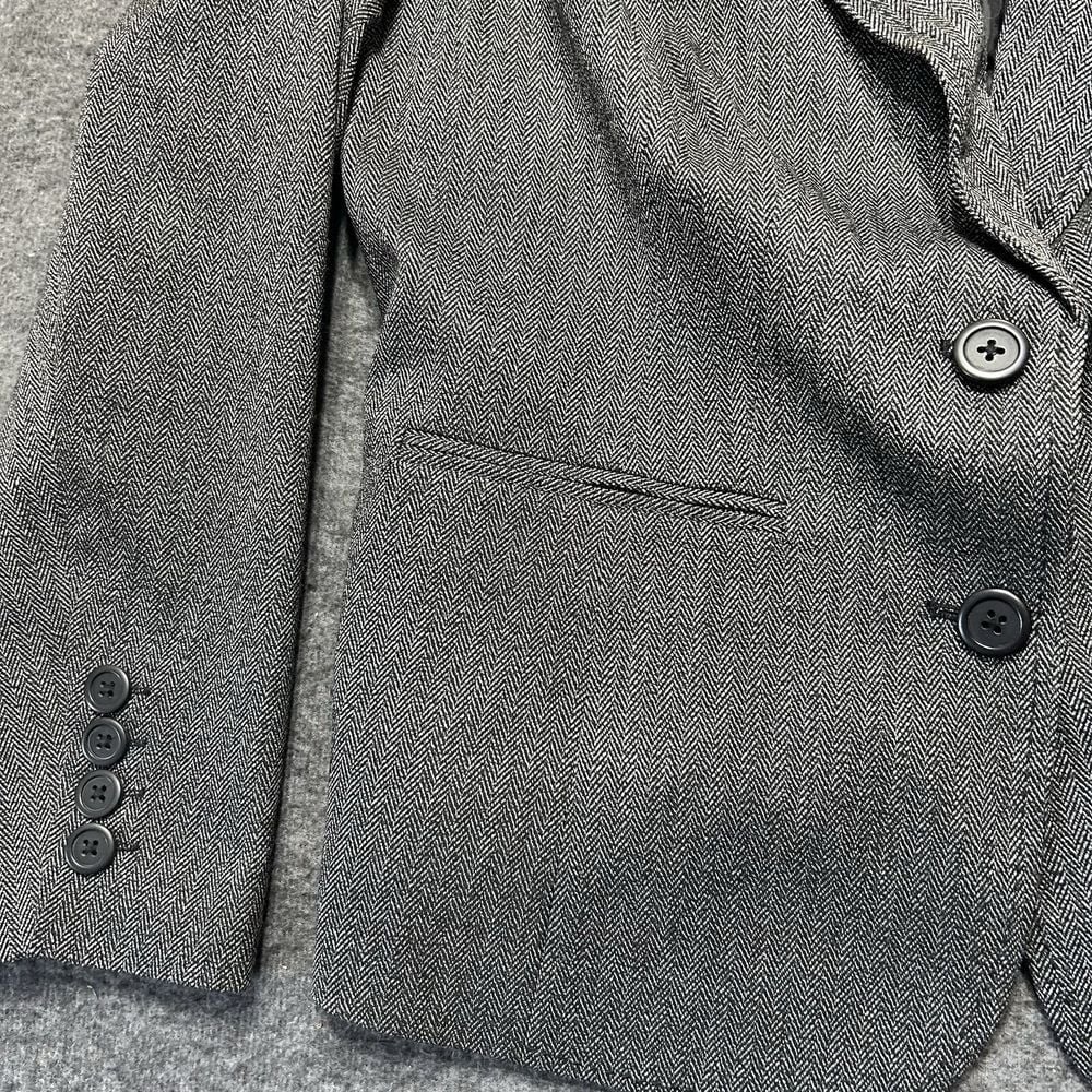 This Lane Bryant women's blazer is a stylish addition to your wardrobe. The gray striped polyester material is perfect for any season, and the V-neckline and two button accents add a touch of sophistication. The long sleeves make it appropriate for both casual and formal occasions, while the size 16 plus size ensures a comfortable fit. The sweater style and preppy theme make it a great choice for school, teacher, college, or classic outfits.